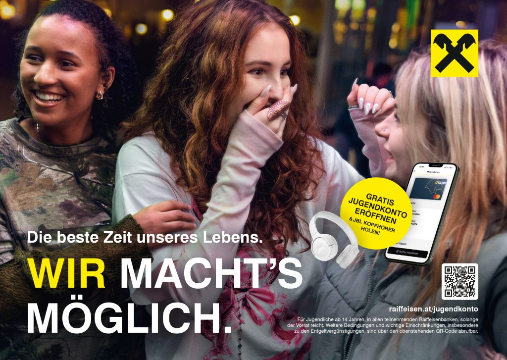 Mit dem Raiffeisen Jugendkonto bist du finanziell flexibel und bestens ausgestattet: